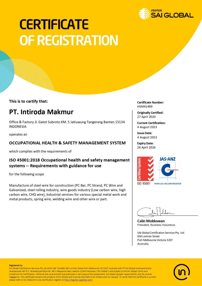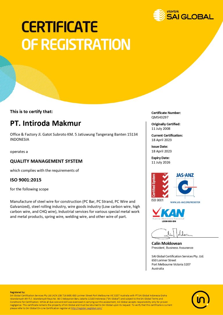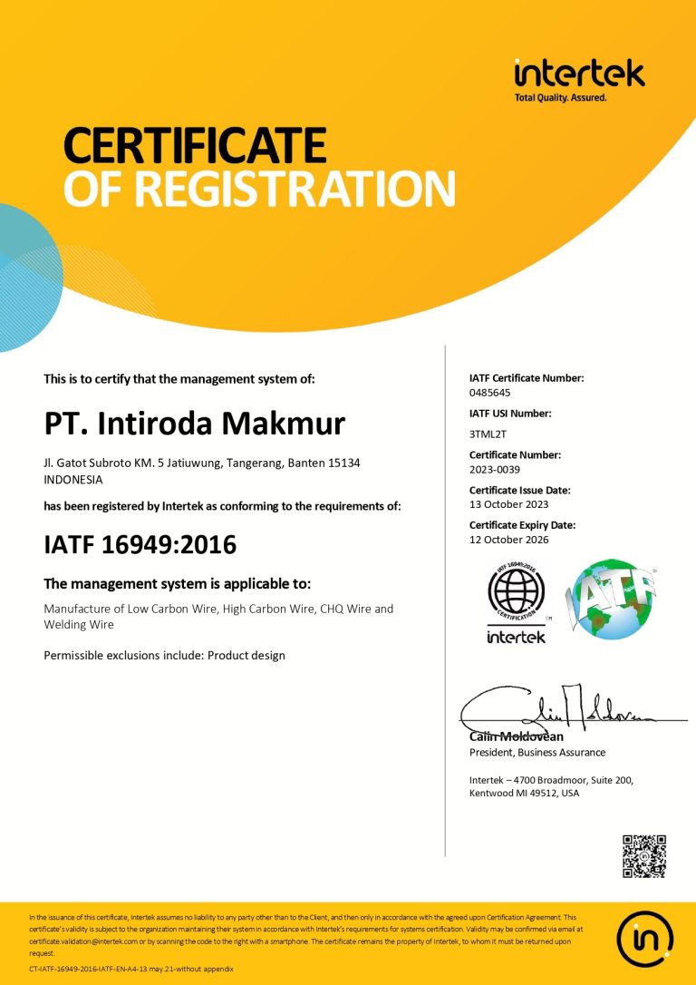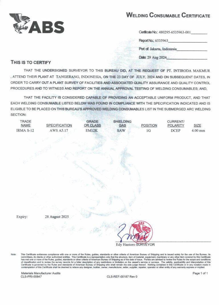 At PT INTIRODA MAKMUR, we take pride in upholding excellence and adhering to top industry standards. Our certifications showcase our commitment to quality, safety, and environmental responsibility, ensuring you receive only the highest standard products.
